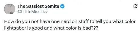 帖文翻译:怎么就没有一个懂行的员工来告诉你们哪种颜色的光剑代表着好、哪种颜色的光剑代表着坏???