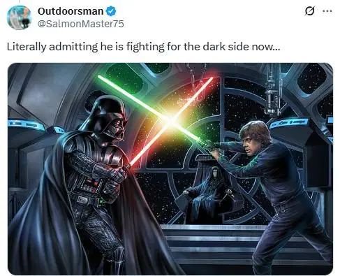 帖文翻译:从字面上承认他正在为黑暗势力而战……